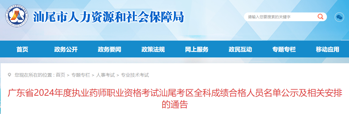 【廣東汕尾】2024年執(zhí)業(yè)藥師考試全科成績合格人員名單公示及證書領(lǐng)取通知