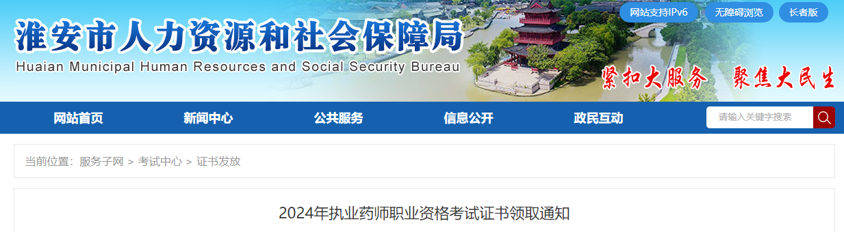 【江蘇淮安】2024年執(zhí)業(yè)藥師職業(yè)資格考試證書領取通知