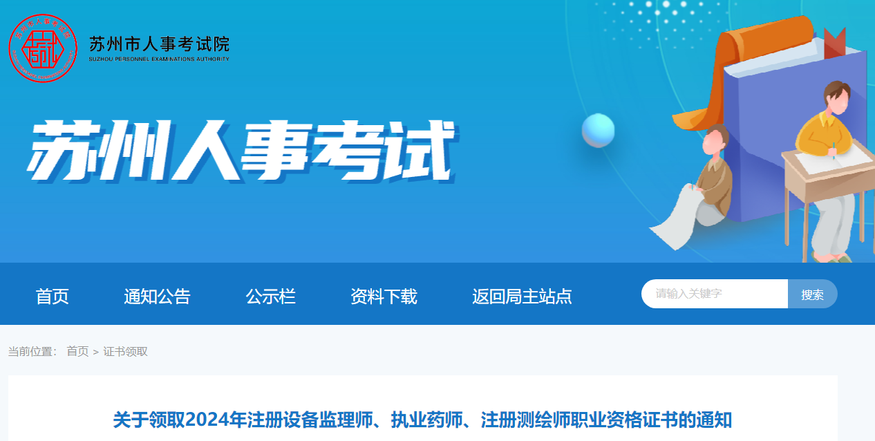 【江蘇蘇州】關(guān)于領(lǐng)取2024年執(zhí)業(yè)藥師、注冊設(shè)備監(jiān)理師、注冊測繪師職業(yè)資格證書的通知