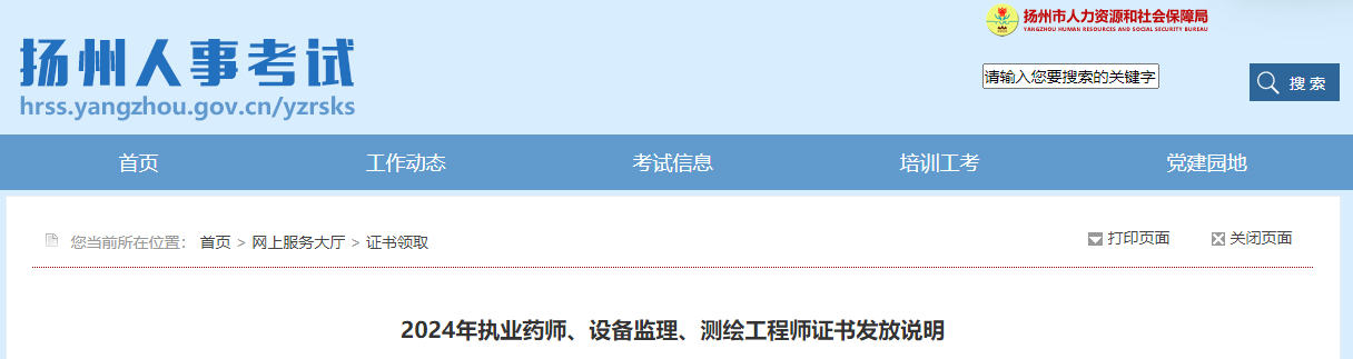 【江蘇揚(yáng)州】2024年執(zhí)業(yè)藥師、設(shè)備監(jiān)理、測(cè)繪工程師證書(shū)發(fā)放說(shuō)明