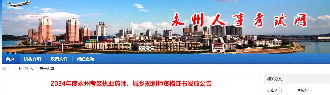 【湖南永州】2024年度永州考區(qū)執(zhí)業(yè)藥師、城鄉(xiāng)規(guī)劃師資格證書發(fā)放公告