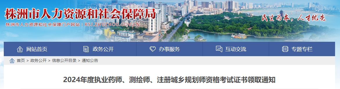 【湖南株洲】2024年度執(zhí)業(yè)藥師、測繪師、注冊城鄉(xiāng)規(guī)劃師資格考試證書領(lǐng)取通知