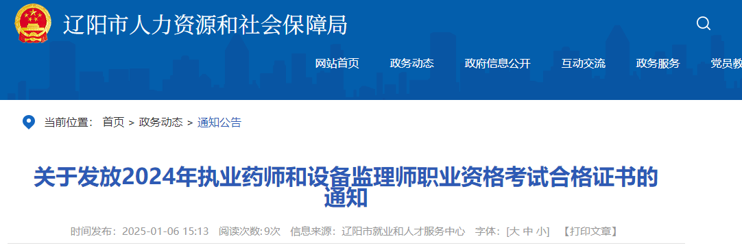 【遼寧遼陽】關(guān)于發(fā)放2024年執(zhí)業(yè)藥師和設(shè)備監(jiān)理師職業(yè)資格考試合格證書的通知