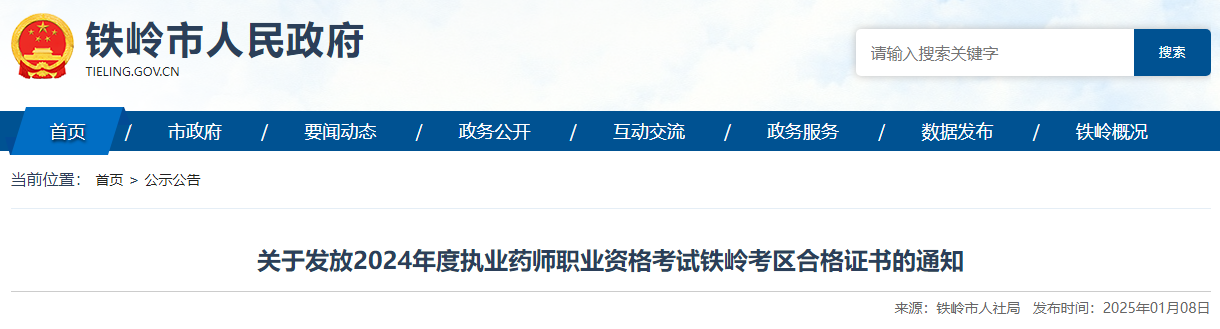 【遼寧鐵嶺】關(guān)于發(fā)放2024年度執(zhí)業(yè)藥師職業(yè)資格考試合格證書(shū)的通知