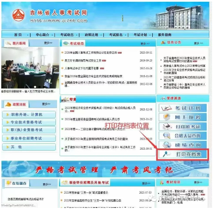 吉林省人事考試網(wǎng)“打印存檔表”位置