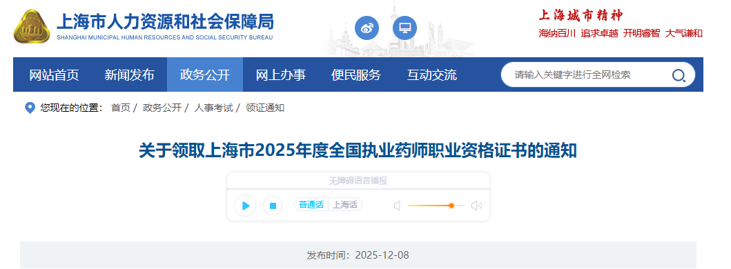 上海市2025年度全國執(zhí)業(yè)藥師職業(yè)資格證書(以下統(tǒng)稱“證書”)領(lǐng)取的有關(guān)事項通知如下: