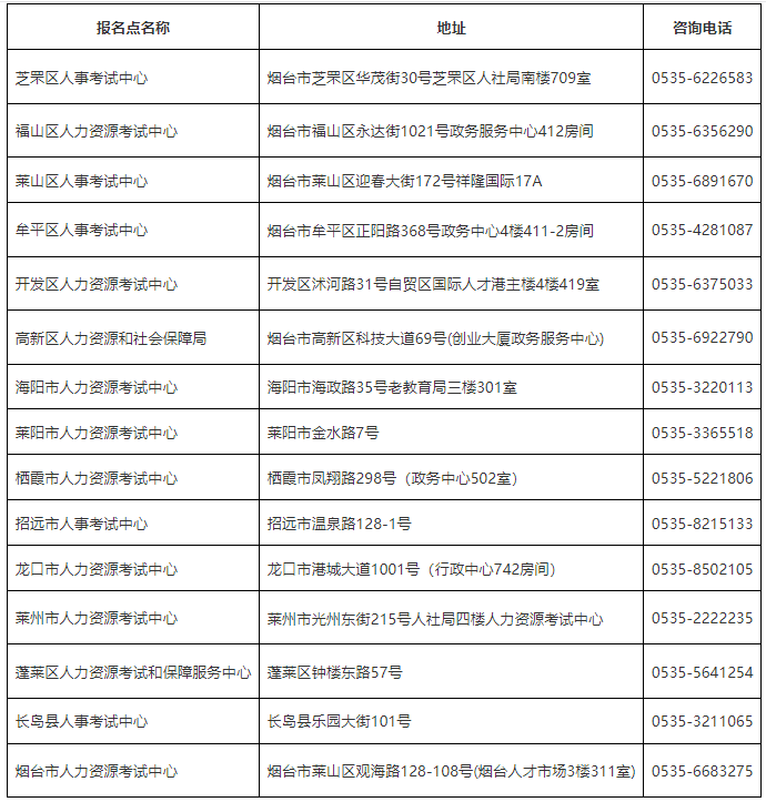 煙臺市各縣市區(qū)考試中心聯(lián)系電話及地址