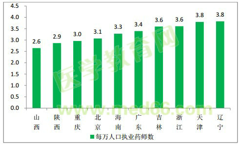 圖 3 每萬人口執(zhí)業(yè)藥師前十位?。ㄊ校┣闆r