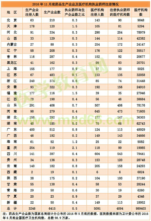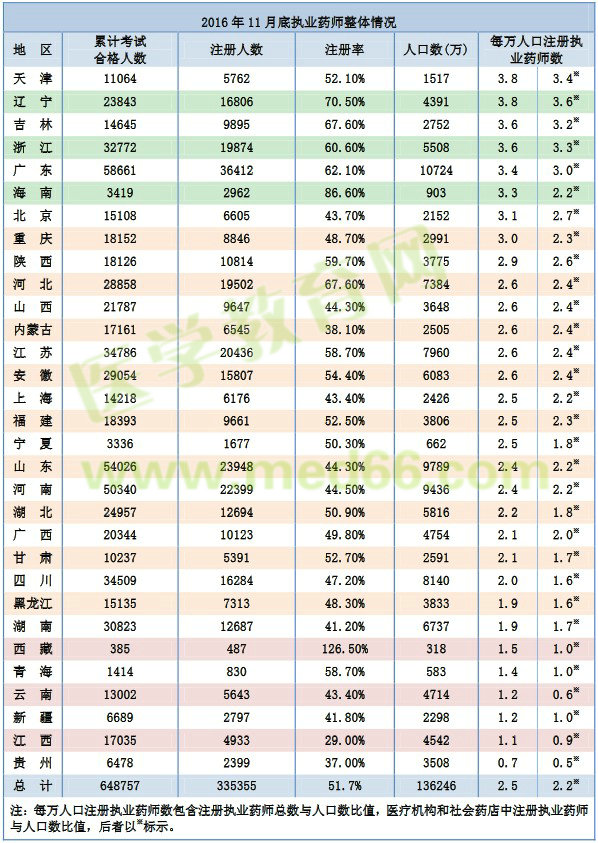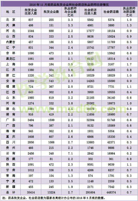 2016年全國執(zhí)業(yè)藥師注冊(cè)情況及分析報(bào)告(截止2016年11月)