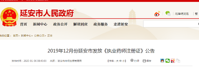 2019年12月份延安市發(fā)放《執(zhí)業(yè)藥師注冊證》公告
