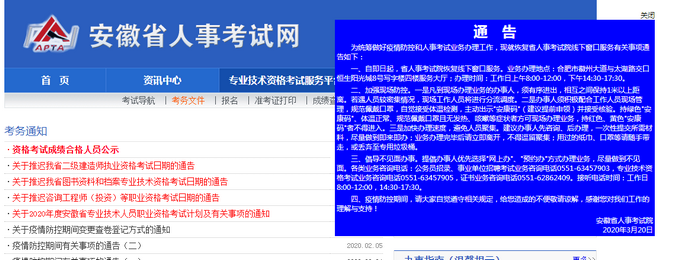 安徽省恢復(fù)省人事考試院線下窗口服務(wù)!執(zhí)業(yè)藥師考生注意!