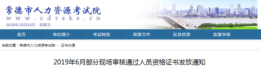 湖南常德2019年執(zhí)業(yè)藥師資格證書(shū)發(fā)放通知