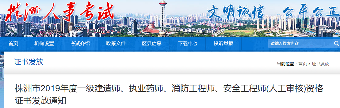 株洲市2019年度一級建造師、執(zhí)業(yè)藥師、消防工程師、安全工程師(人工審核)資格證書發(fā)放通知