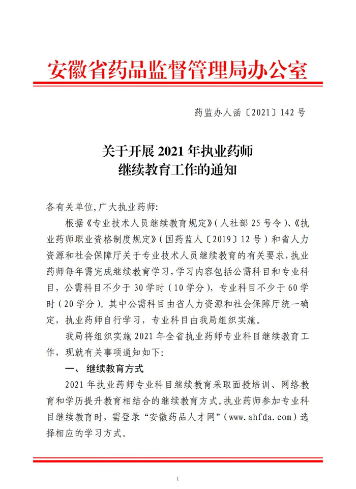 關于2021年安徽省執(zhí)業(yè)藥師繼續(xù)教育,以下是安徽省官方發(fā)布的通知!考生自行查看!希望對你有用!