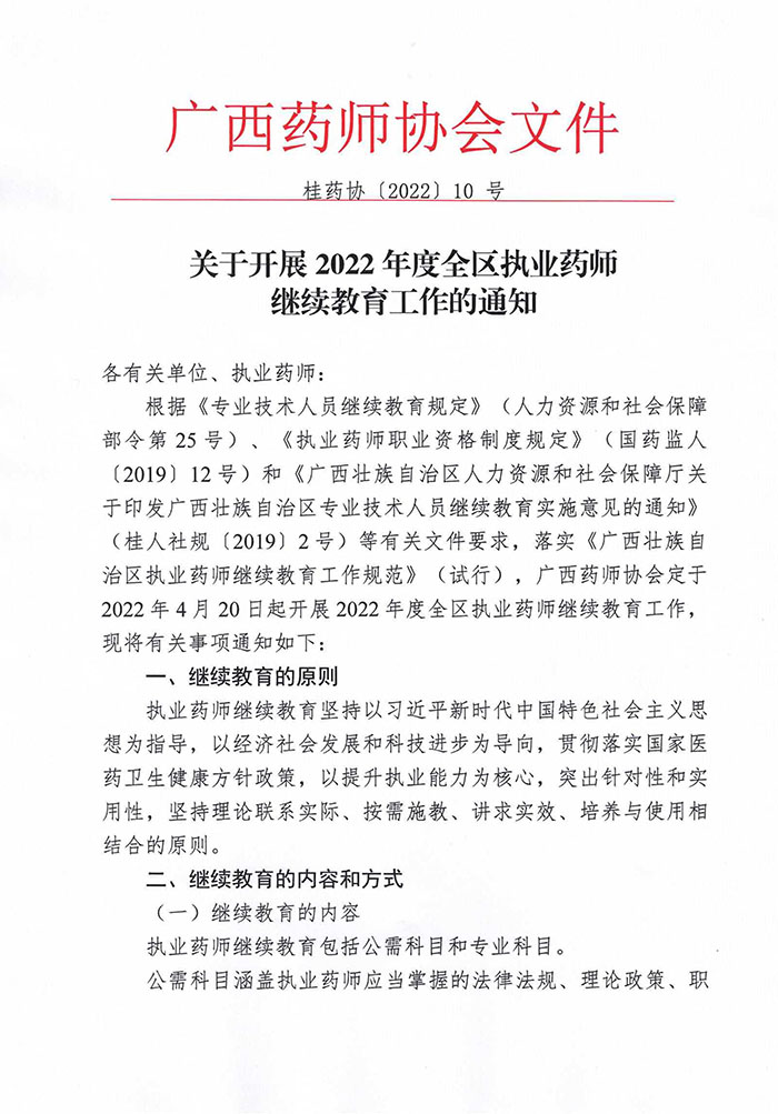 關(guān)于開展2022年度全區(qū)執(zhí)業(yè)藥師繼續(xù)教育的通知