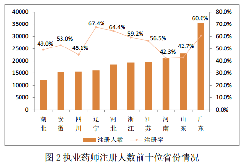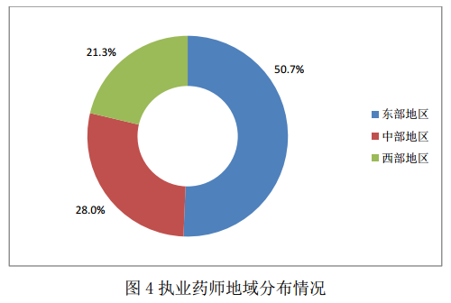 執(zhí)業(yè)藥師按區(qū)域分布情況:東部地區(qū)162859人,中部地區(qū)90112人,西部地區(qū)68454人,分別占注冊總數(shù)50.7%、28.0%、21.3%,中、西部地區(qū)執(zhí)業(yè)藥師注冊占比增加。