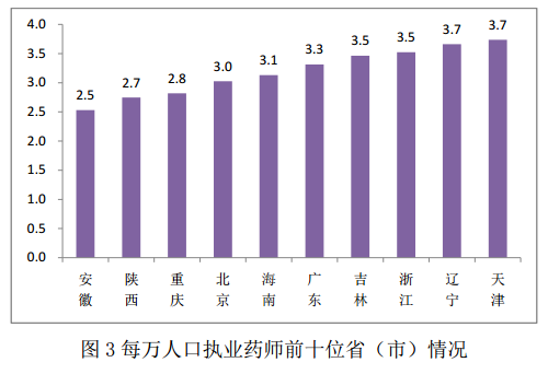 每萬人口執(zhí)業(yè)藥師前十位的省(市):天津、遼寧、浙江、吉林、廣東、海南、北京、重慶、陜西、安徽。