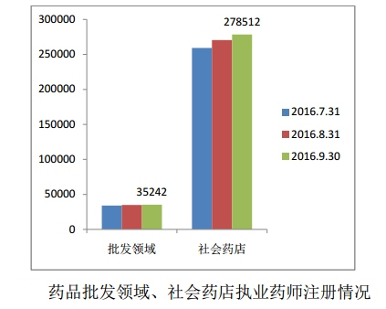 截至2016年9月30日,執(zhí)業(yè)藥師注冊動態(tài)情況如下:
