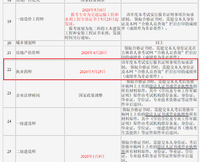 吉林省直2019年執(zhí)業(yè)藥師證書領(lǐng)取時間為5月25日