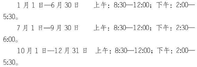 領(lǐng)取時(shí)間:周一至周五(法定節(jié)假日除外),具體作息時(shí)間如下。