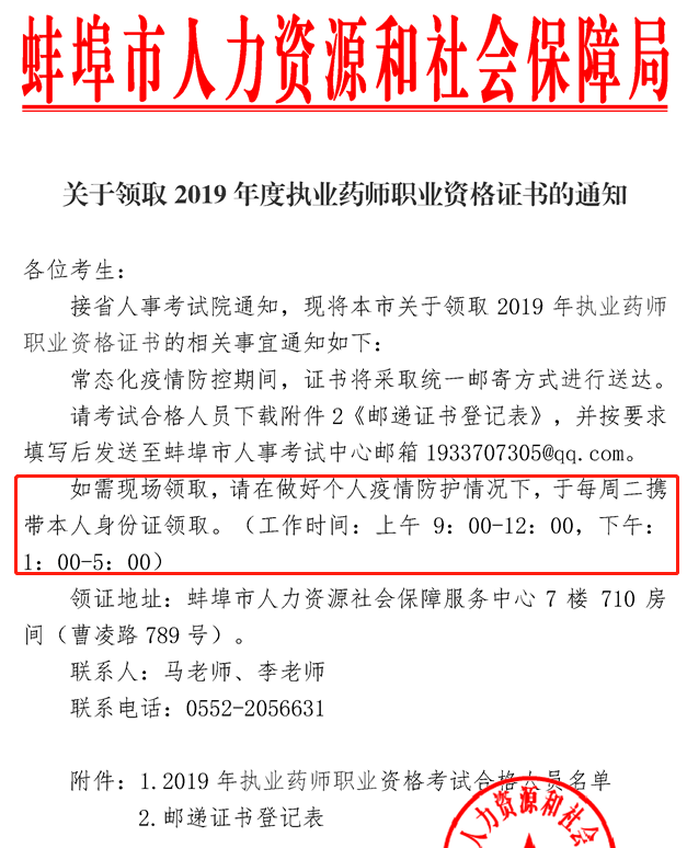 蚌埠市人力資源和社會(huì)保障局發(fā)布了關(guān)于領(lǐng)取2019年度執(zhí)業(yè)藥師專業(yè)技術(shù)資格的職業(yè)資格證書的通知,具體內(nèi)容如下: