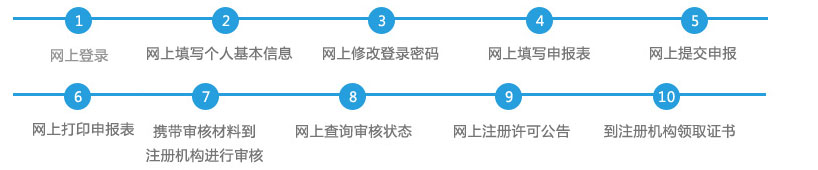 網(wǎng)上申報(bào),窗口受理:申請(qǐng)人提出注冊(cè)申請(qǐng)→注冊(cè)機(jī)構(gòu)受理出具受理證明→審核申請(qǐng)材料→復(fù)審申請(qǐng)→許可決定簽發(fā)注冊(cè)證書-送達(dá)
