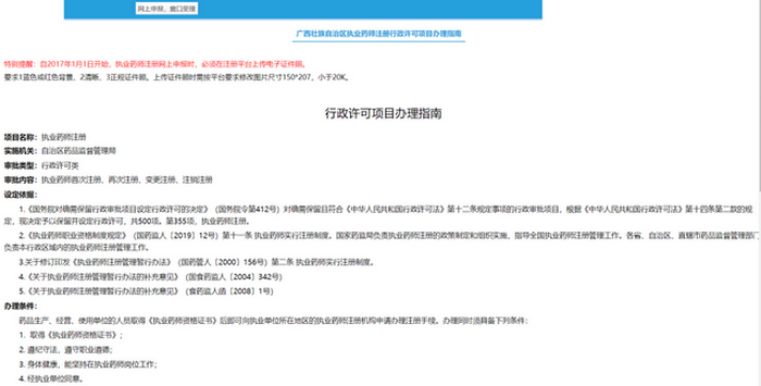 大家可以進入到執(zhí)業(yè)藥師注冊辦理頁面,要注意認真查看【行政許可項目辦理指南】,指南中會有很多重要信息,辦理需要用到的資料、辦理時限等注意事項。