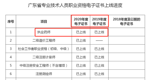 根據(jù)廣東省人事考試網(wǎng)《廣東省專業(yè)技術(shù)人員職業(yè)資格電子證書上線進(jìn)度》獲悉,廣東省2020年及2019年執(zhí)業(yè)藥師考試電子證書已上線!電子證書在全省范圍內(nèi)與紙質(zhì)證書具有同等效力。