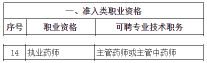 上海人力資源和社會保障局公布了《關(guān)于部分專業(yè)技術(shù)類職業(yè)資格和職稱對應(yīng)辦法的通知》,其中,根據(jù)國家職業(yè)資格制度中有明確規(guī)定的,對于取得執(zhí)業(yè)藥師資格證書的人員,用人單位可根據(jù)相關(guān)任職條件聘任相應(yīng)的專業(yè)技術(shù)職務(wù)為主管藥師/主管中藥師!