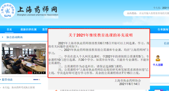 上海市關(guān)于2021年執(zhí)業(yè)藥師繼續(xù)教育選課的補充說明!