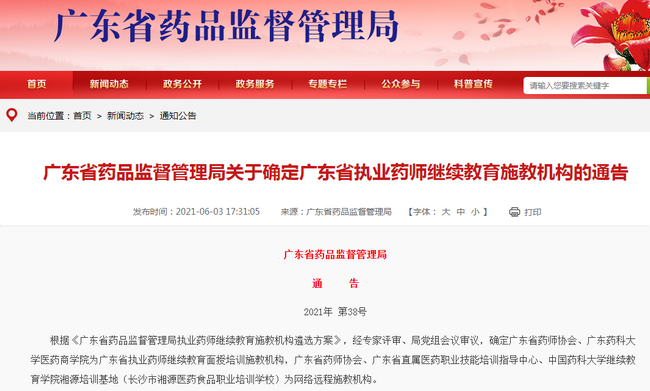根據(jù)《廣東省藥品監(jiān)督管理局執(zhí)業(yè)藥師繼續(xù)教育施教機(jī)構(gòu)遴選方案》,經(jīng)專家評審、局黨組會議審議,確定廣東省藥師協(xié)會、廣東藥科大學(xué)醫(yī)藥商學(xué)院為廣東省執(zhí)業(yè)藥師繼續(xù)教育面授培訓(xùn)施教機(jī)構(gòu),廣東省藥師協(xié)會、廣東省直屬醫(yī)藥職業(yè)技能培訓(xùn)指導(dǎo)中心、中國藥科大學(xué)繼續(xù)教育學(xué)院湘源培訓(xùn)基地(長沙市湘源醫(yī)藥食品職業(yè)培訓(xùn)學(xué)校)為網(wǎng)絡(luò)遠(yuǎn)程施教機(jī)構(gòu)。