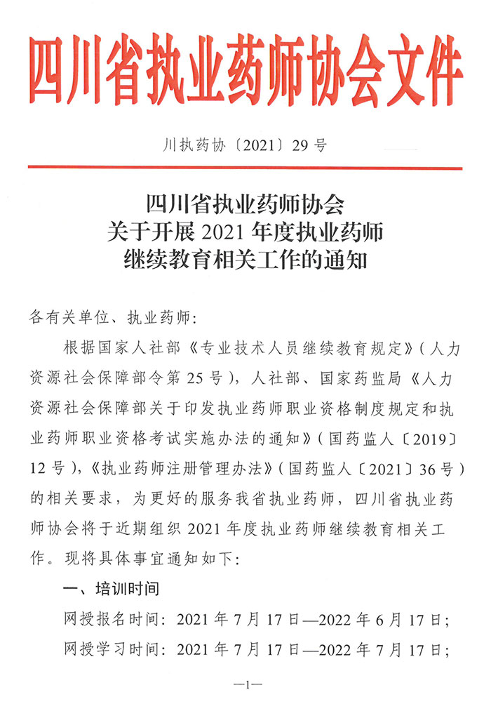 四川省2021年度執(zhí)業(yè)藥師繼續(xù)教育相關(guān)工作通知!