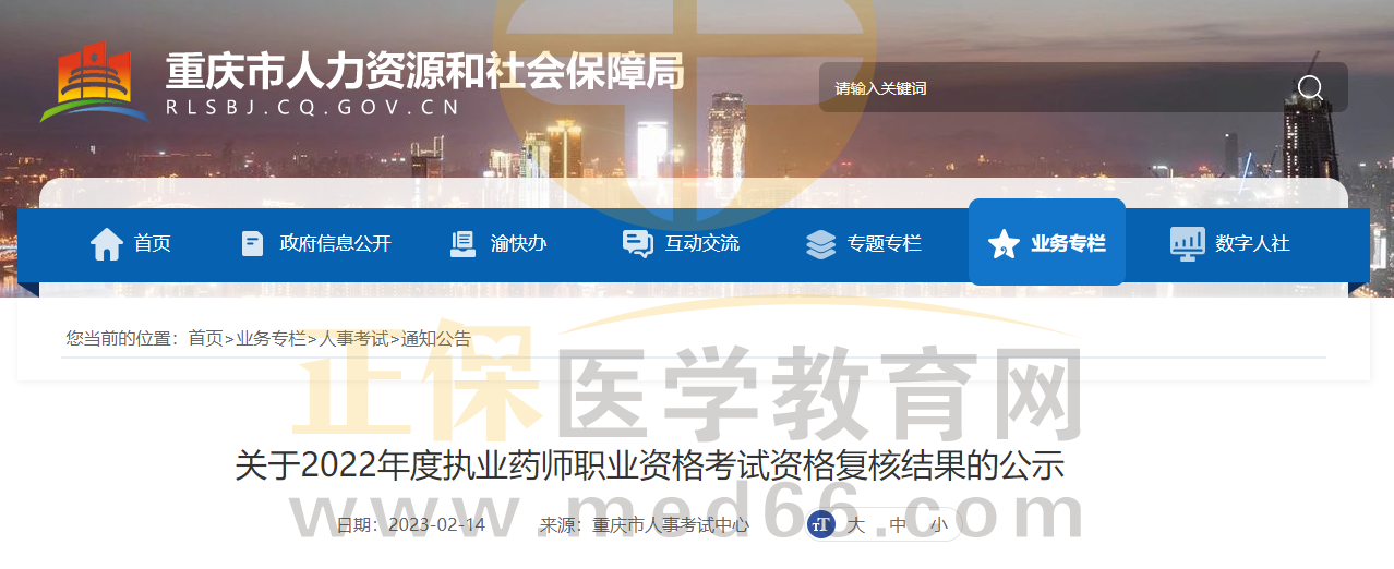 重慶市關(guān)于2022年度執(zhí)業(yè)藥師職業(yè)資格考試資格復核結(jié)果的公示