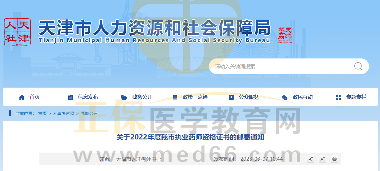 【天津】關(guān)于2022年度我市執(zhí)業(yè)藥師資格證書(shū)的郵寄通知