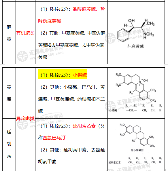 3.呈黃色的生物堿是小檗堿、蛇根堿;呈紅色的生物堿是藥根堿、小檗紅堿。
