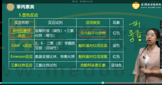 異羥肟酸鐵反應(yīng):由于香豆素類具有內(nèi)酯環(huán),在堿性條件下可開環(huán),與鹽酸羥胺縮合成異羥肟酸,然后再在酸性條件下與三價鐵離子絡(luò)合成鹽而顯紅色。