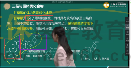 甘草皂苷又稱甘草酸,為甘草中的甜味成分,甘草皂苷與5%的稀硫酸在加壓、110℃~120℃條件下水解,可生成一分子的甘草皂苷元(甘草次酸)和兩分子的葡萄糖醛酸。
