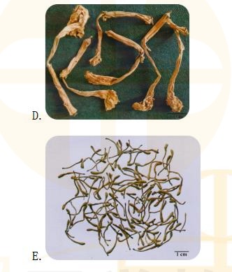 2.圖示藥材粉末顯微鑒別可見花粉粒類球形,表面有條紋狀雕紋的是