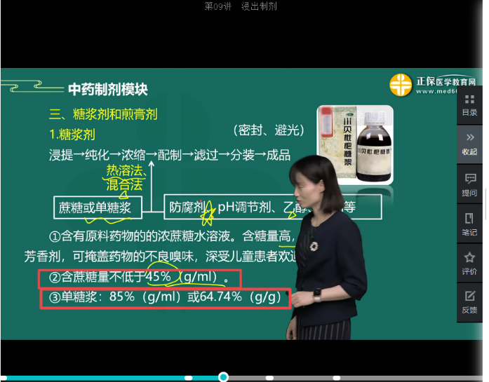 糖漿劑含蔗糖量應(yīng)不低于45%(g/ml)。