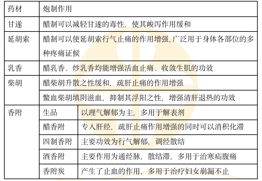 注意:醋炙法多用于疏肝解郁、散瘀止痛、攻下逐水的藥物。