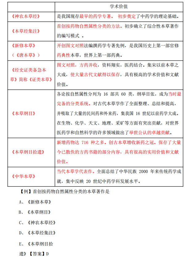 2020年《中藥一》重點:本本草著作的學術(shù)價值,作者,年代