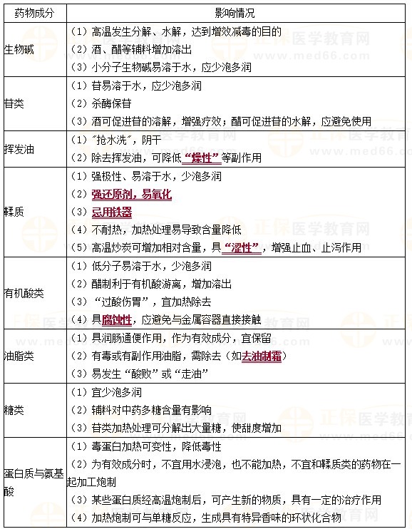 《中藥一》高頻考點:炮制對藥物成分的影響