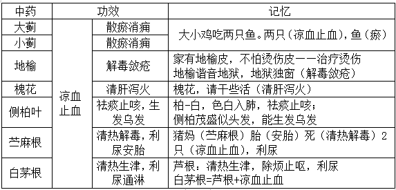 1. 涼血止血藥(記:大小兩只雞,三棵樹,兩個根)