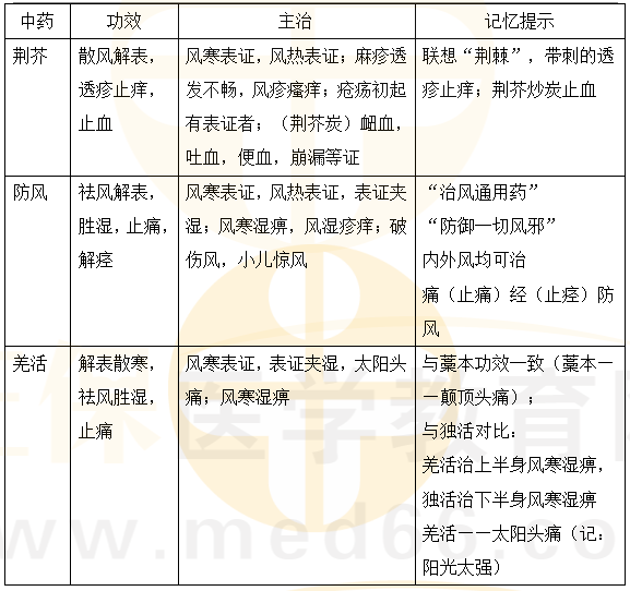 【解析】防風【主治病證】(1)風寒表證,風熱表證,表證夾濕。(2)風寒濕痹,風濕疹癢。(3)破傷風,小兒驚風。注意防風不能補血,不治療血虛發(fā)痙。