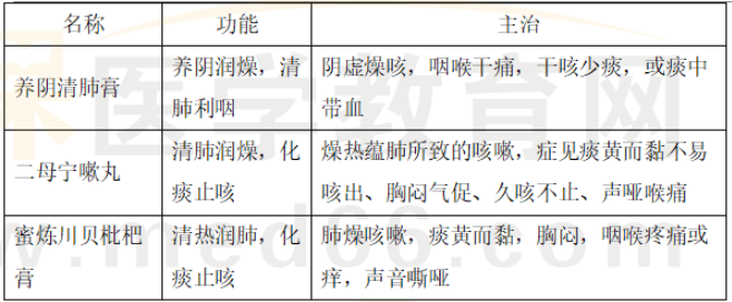 【解析】養(yǎng)陰清肺膏【功能】養(yǎng)陰潤燥,清肺利咽?!局髦巍筷幪撛锟?,咽喉干痛,干咳少痰,或痰中帶血。