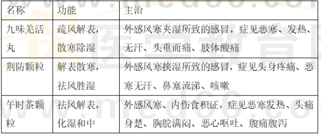 【解析】九味羌活丸的功能:疏風(fēng)解表,散寒除濕。主治:外感風(fēng)寒夾濕所致的感冒,癥見惡寒、發(fā)熱、無汗、頭重而痛、肢體酸痛。