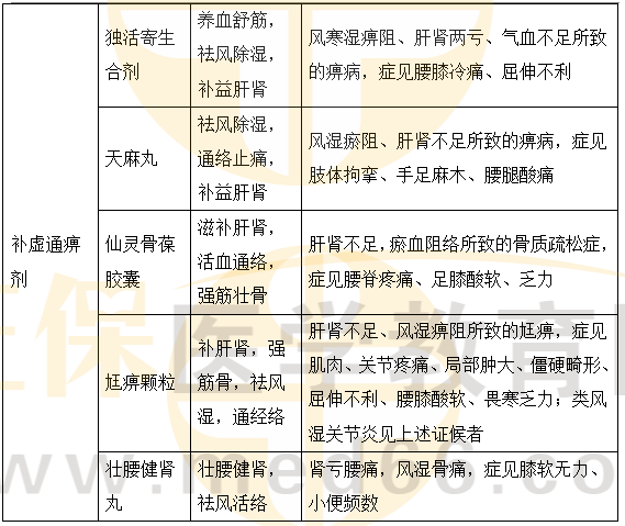 (3)補虛通痹劑簡記:天仙獨寄尪痹顆粒壯腰健腎。除了壯腰健腎丸治療的腎虧,其他幾個均是肝腎不足。