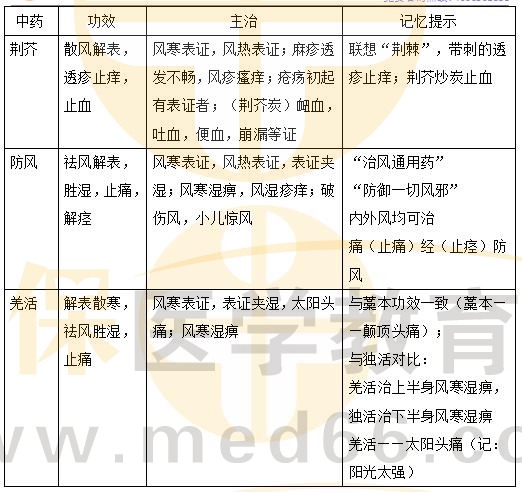 【解析】防風(fēng)【主治病證】(1)風(fēng)寒表證,風(fēng)熱表證,表證夾濕。(2)風(fēng)寒濕痹,風(fēng)濕疹癢。(3)破傷風(fēng),小兒驚風(fēng)。注意防風(fēng)不能補(bǔ)血,不治療血虛發(fā)痙。