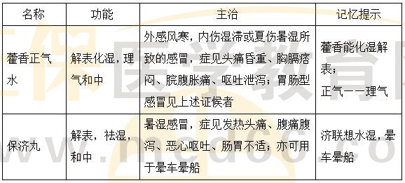 【解析】藿香正氣水的功能:解表化濕,理氣和中。
