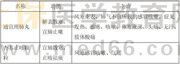 【解析】通宣理肺丸【功能】解表散寒,宣肺止咳?!局髦巍匡L(fēng)寒束表、肺氣不宣所致的感冒咳嗽,癥見發(fā)熱、惡寒、咳嗽、鼻塞流涕、頭痛、無汗、肢體酸痛。